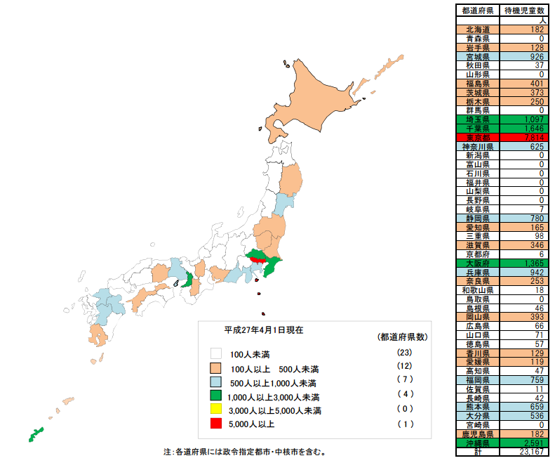 平成 2 7年4月1日 全国待機児童 マップ (都道府県別)