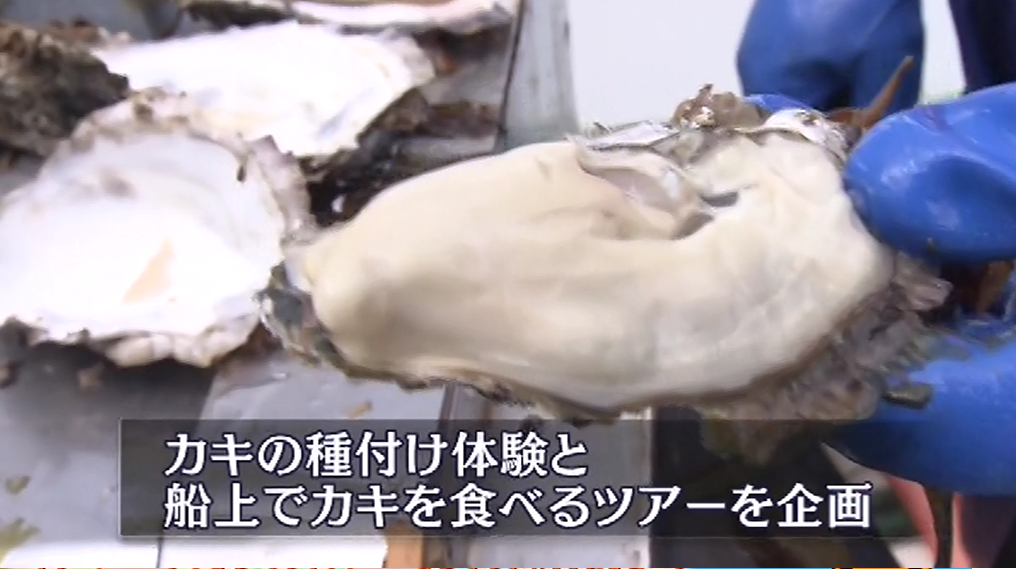 ここではカキの種付け体験船上でカキを食べるというツアーを企画しています。